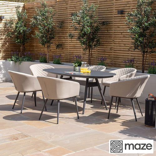 Maze Ambition 7 Piece Oval Dining Patio Set + Cover (in Oatmeal)