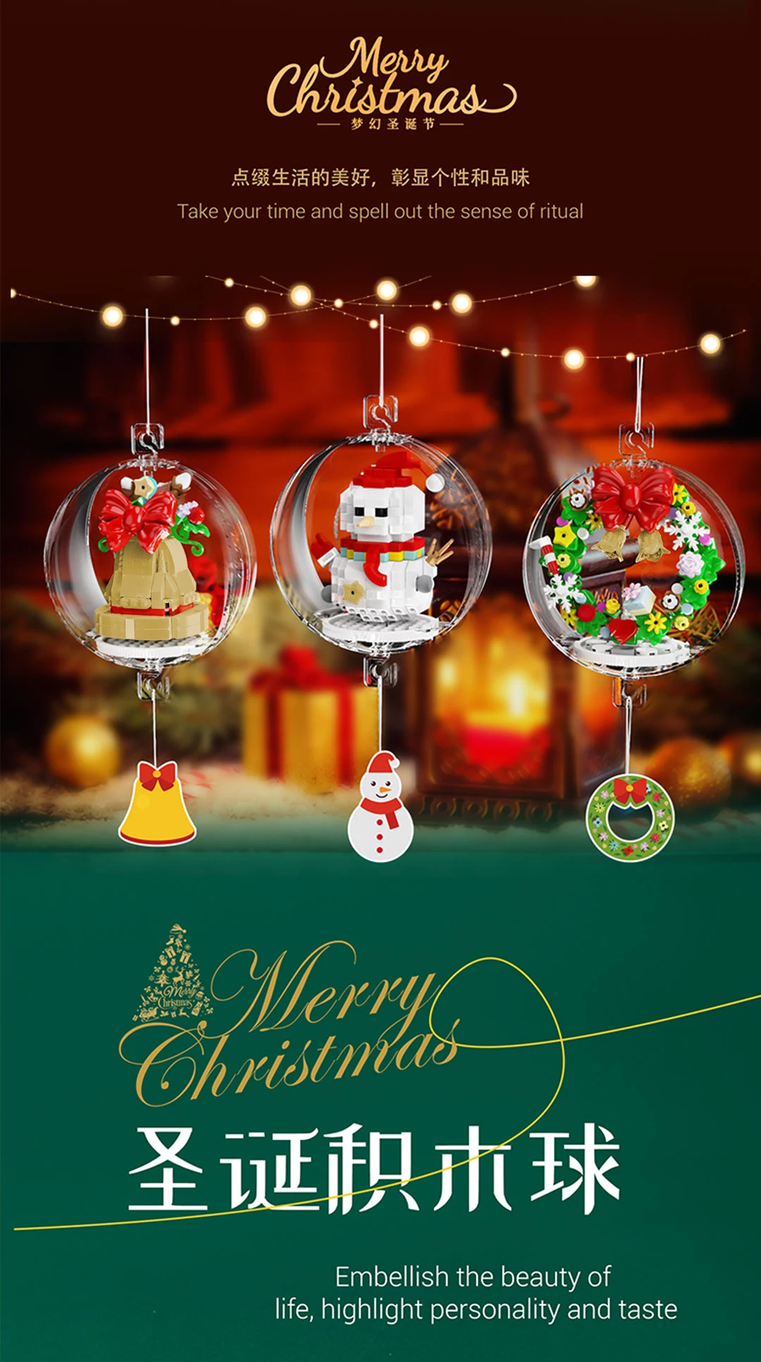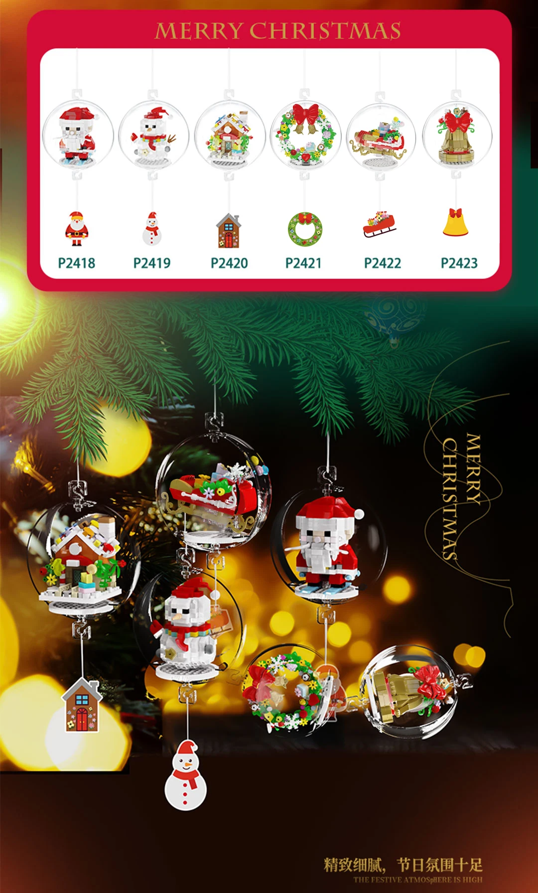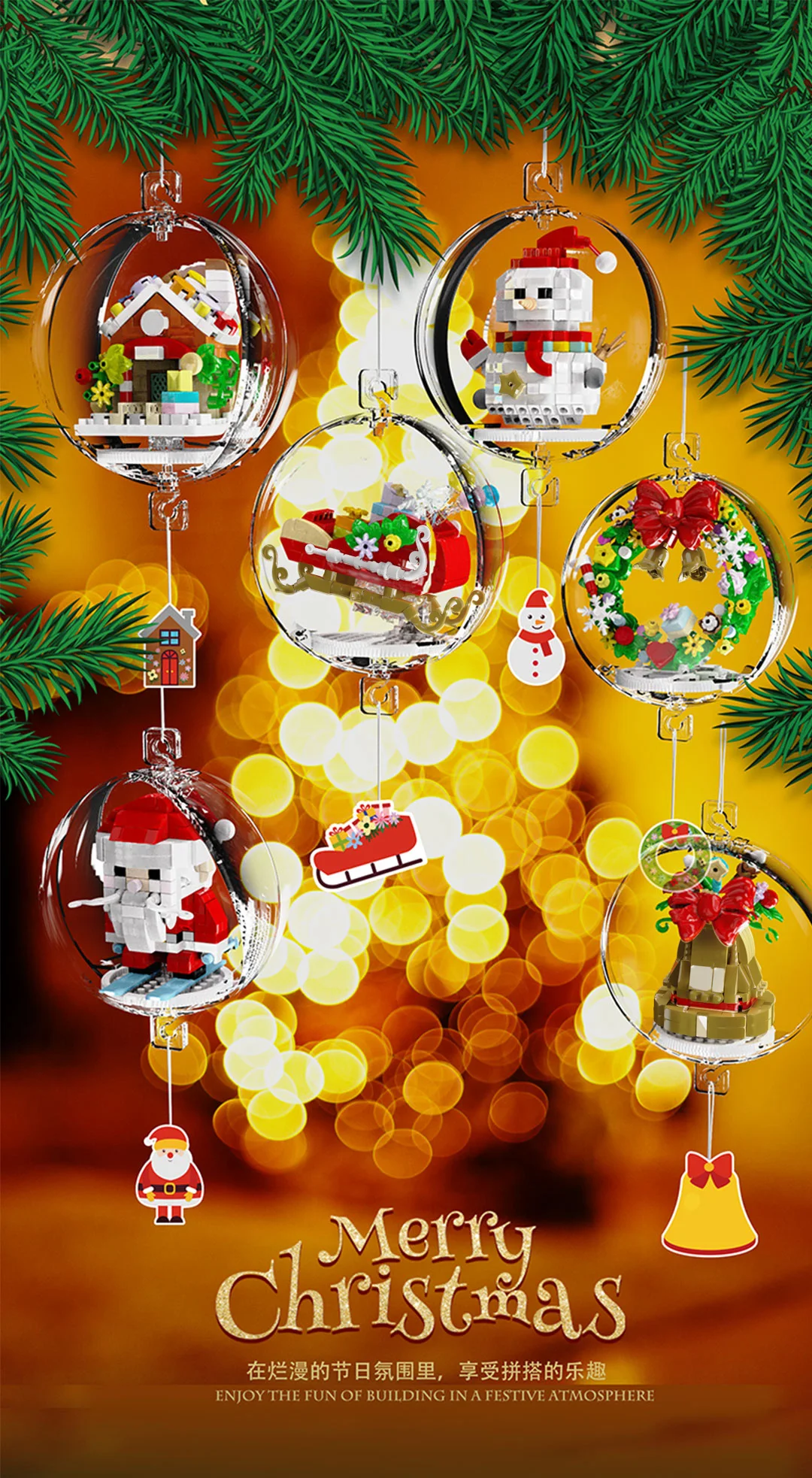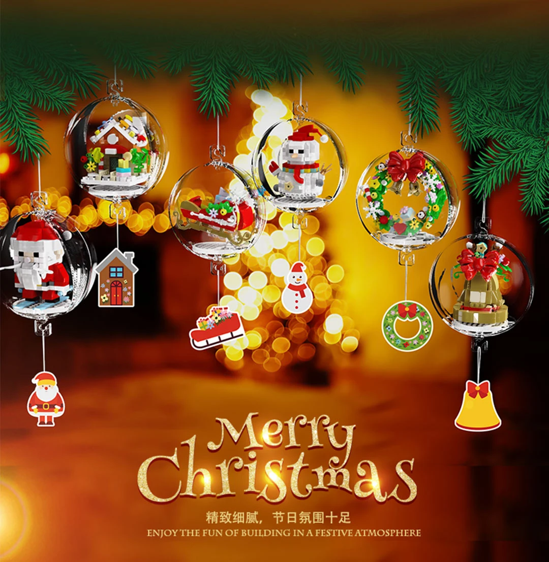 Christmas Pendant Ball Building Blocks Mini Bricks Bell Snowman Santa Claus Christmas Tree Decorations For Home Christmas Gifts